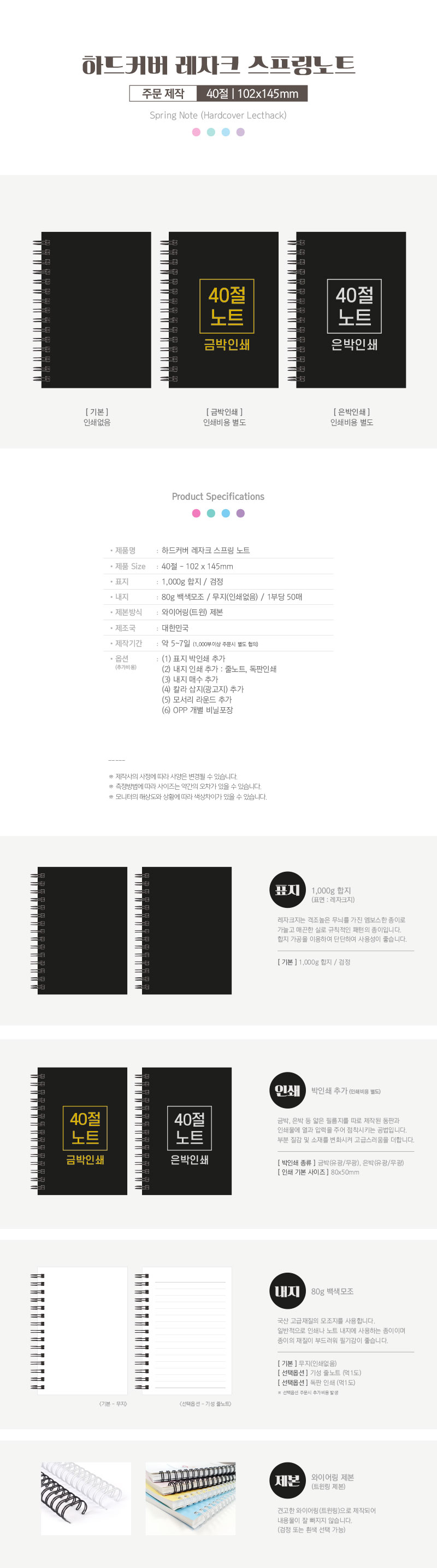 ÇϵåÄ¿¹ö ·¹ÀÚÅ© 40Àý ³ëÆ® (102*145mm)