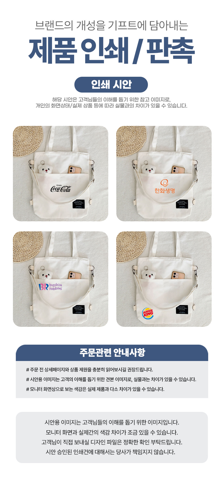 - °í°´ÀÌ Á÷Á¢ µðÀÚÀÎ ÀÛ¾÷ ½Ã ȨÆäÀÌÁö ¹× ´ç»ç¿¡¼­ º°µµ·Î Àü´ÞÇØµå¸®´Â ÀÛ¾÷ À¯ÀÇ»çÇ×À» È®ÀÎÇϽŠÈÄ ÀÛ¾÷ÇϽñ⠹ٶó¸ç, À¯ÀÇ»çÇ× ºÒÀÌÇàÀ¸·Î ÀÎÇÑ Àμâ»ç°í ¹ß»ý ½Ã »ç°í󸮵ÇÁö ¾Ê½À´Ï´Ù.