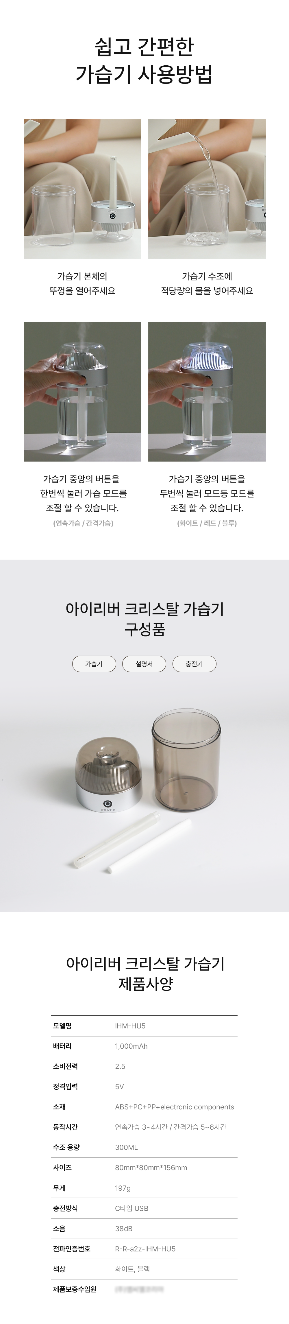 ¾ÆÀ̸®¹ö Å©¸®½ºÅ» °¡½À±â 300ml IHM-HU5
